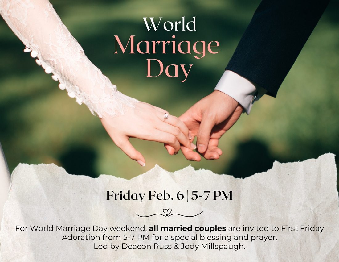 Adoration of the Blessed Sacrament will take place on the first Friday of every month. Adoration begins immediately following the Friday 8:30 am Mass. The Blessed Sacrament is reposed at 8pm.